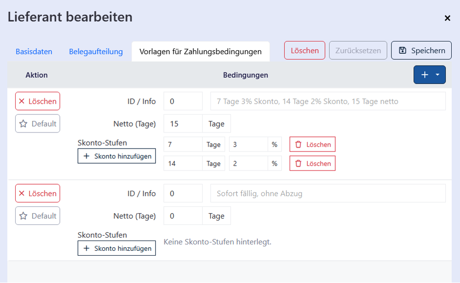 Skonto-Konditionen eintragen